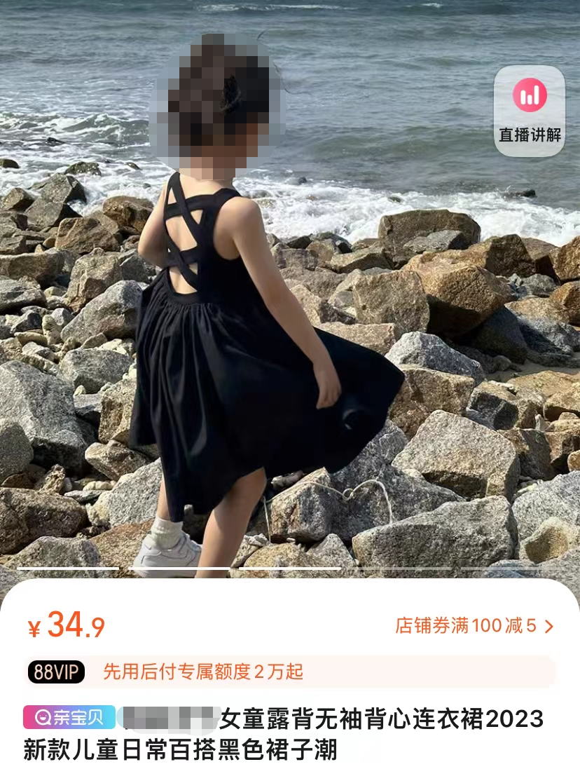 穿着性感姿势诱惑儿童“奶辣风”渐流行“重磅小心机露背连衣裙,2023新款”……单看这些文字,正浏览商品的河南省南阳市的年轻妈妈赵女士并没感到不妥,但当仔细看商品详情时才发现,这原来是一款“儿童日常黑裙子”。