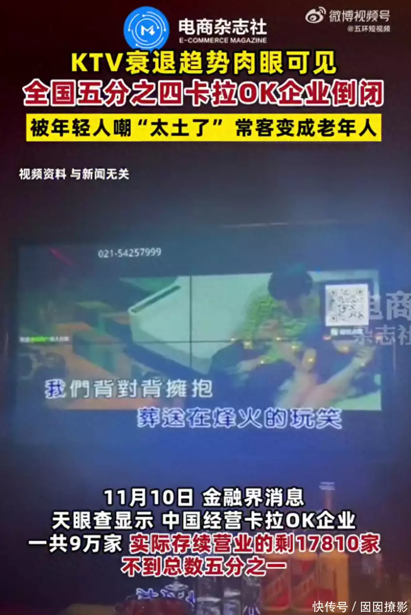 流行音乐的坠落,导致了KTV市场陷入低迷,天眼查显示,中国经营卡啦ok企业一共9万家,目前只剩17810家,不到总数的五分之一。网络上有一句非常流行的话,唯有“音乐”不曾亏欠8090后。