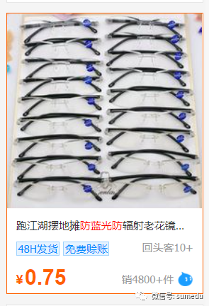 这个项目也很暴利,因为大家老盯着手机看,需要防蓝光缓解眼睛疲劳这眼睛是1-2块钱的成本,一般摆地摊卖到1货源网0元不还价,卖一副赚8元,像小城镇摆地摊的话,大约可以卖到15元,这就是赚的信息差的钱如果你会包装的话,精美包装加上说明书和广告宣传,那些微商网上还有可能卖到100多。