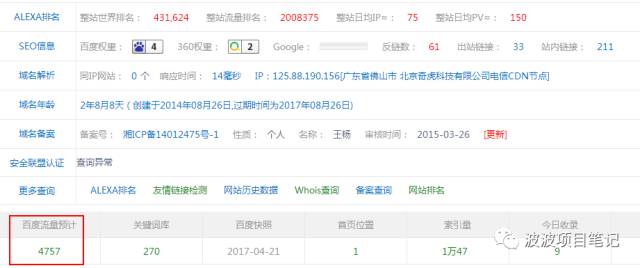 点开自然排名在首位的网站,用站长工具查看,日均有5000IP