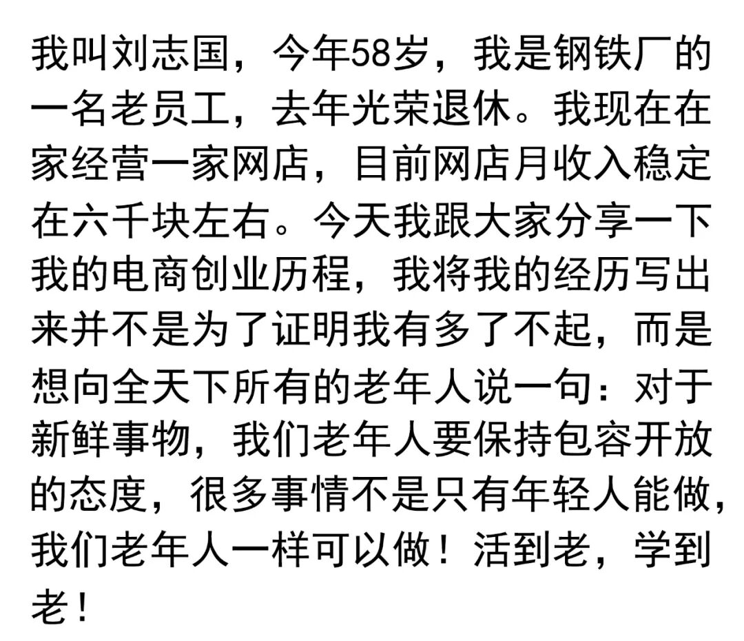 现在中国的电商发展的如火如荼,很多人靠开网店赚到了人生的第一桶金,于是,一些老年人也想开一个网店,毕竟做电商并不是年轻人的专利,老年人一样也能做得出色 对于做电商的中小蓝海无货源网卖家来说,机会其实不少,在那么大的市场上,肯定会有你店铺的生存空间。