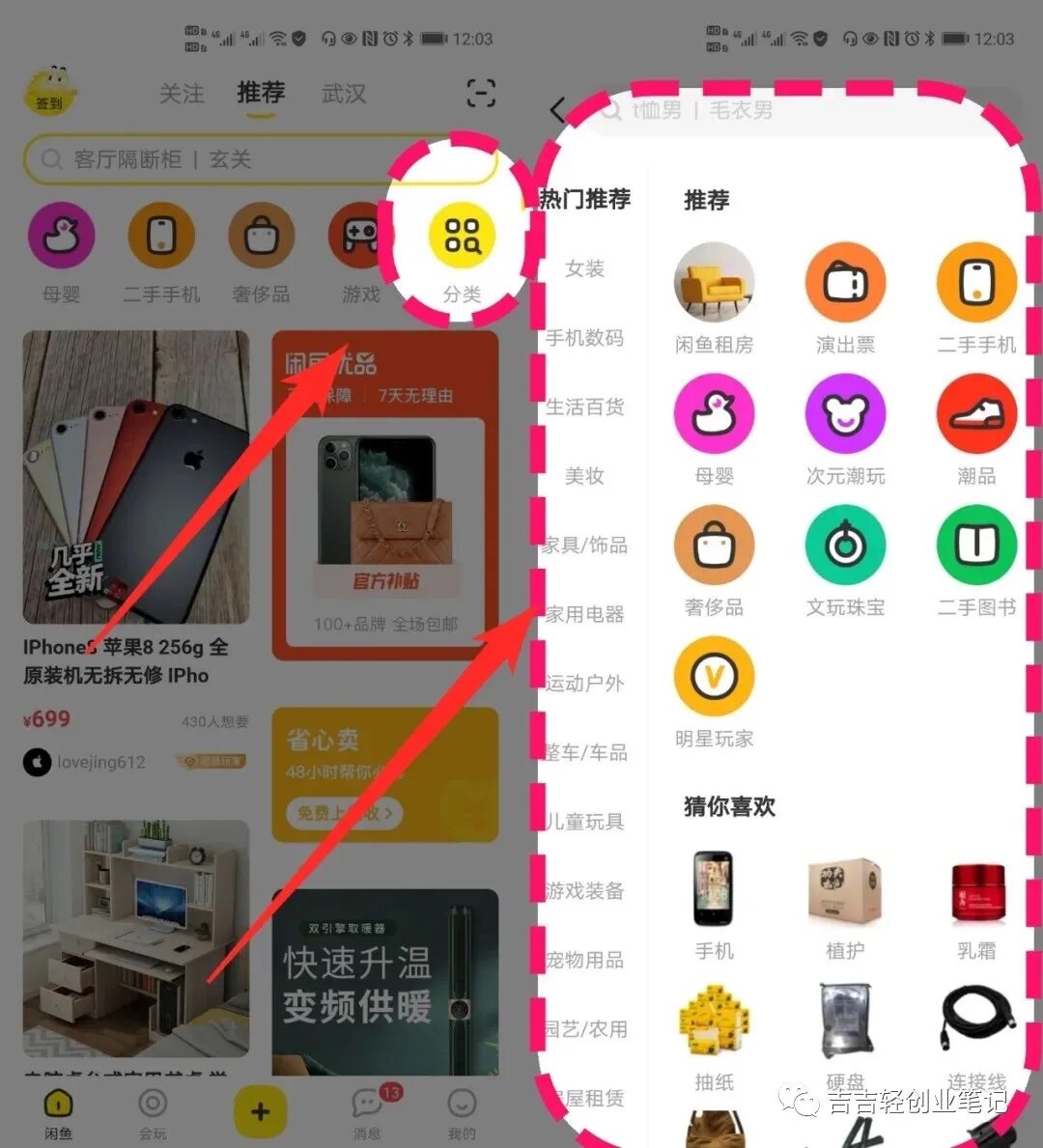 6产品选择选品方法一:通过闲鱼的分类进入到每个类目下热销产品,找到我想要的数量多的,就可以作为我们的选品方向