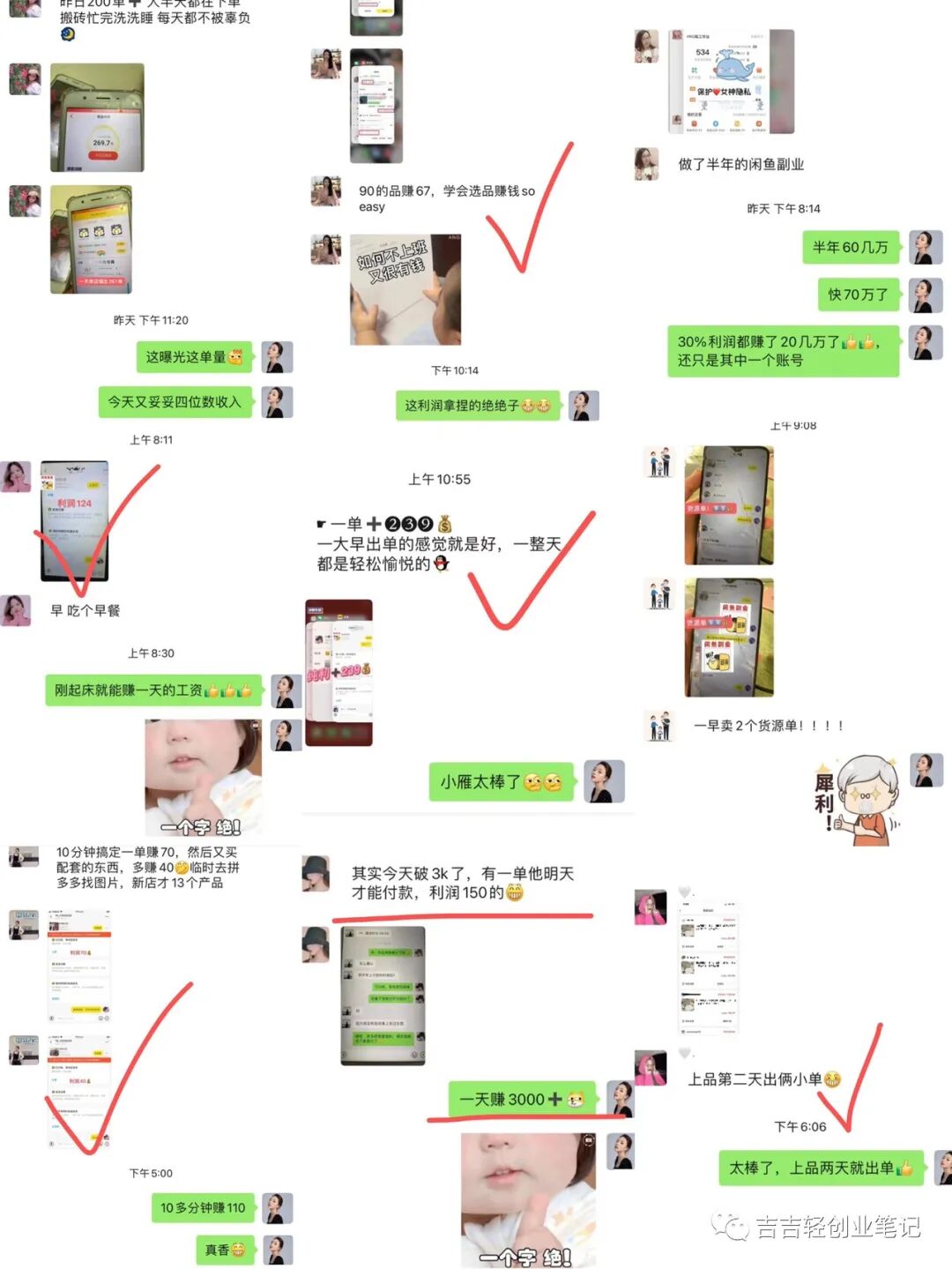 上面只是我们随机的截图,在我们这里学习的学员,大部学员15-20天可以做到日入100-200元我们的目标是:第一个月突破日入100元,第二个月实现日入突破300元,第三个目标完成年入10蓝海无货源网万,因为有我们有数据参考,只要跟上你也可以。