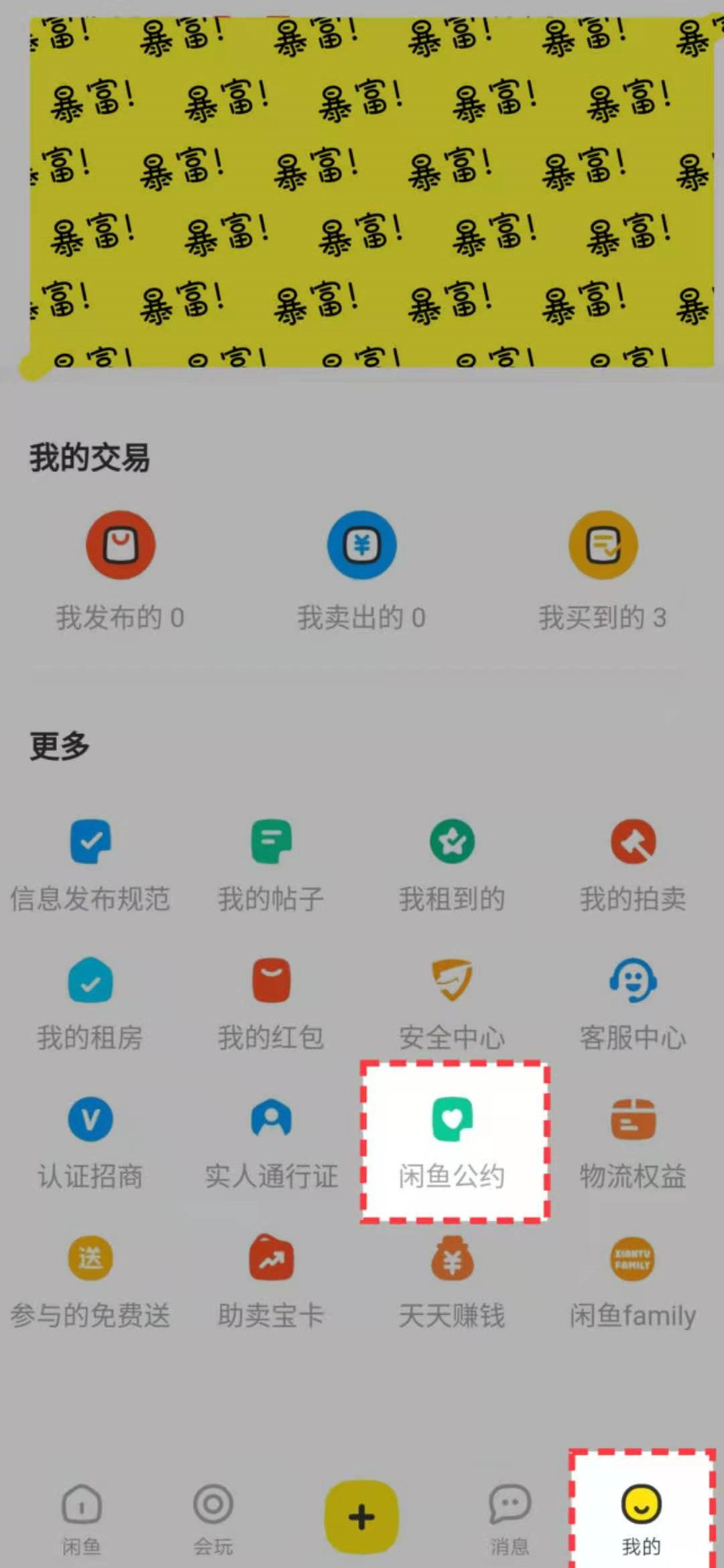 b、避免违规:仔细看一遍闲鱼的规则,包括哪些不能卖,哪些事情不能做之类的,食品、纺织品、冒牌货假货、医疗器械 等等,微信、QQ字眼一定不要出现,同样的话,不要重复太多次c、闲鱼公约一定要看:打蓝海无货源网开闲鱼点击我的,就可以找到闲鱼公约,如下图。