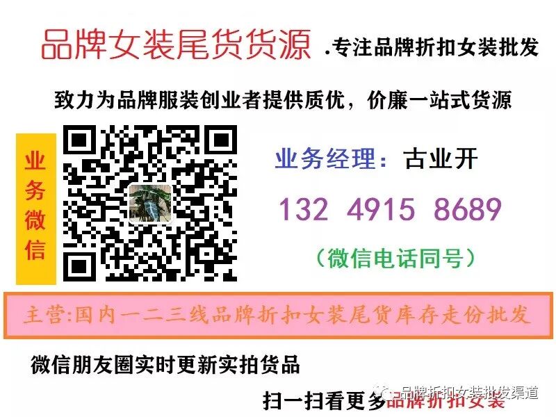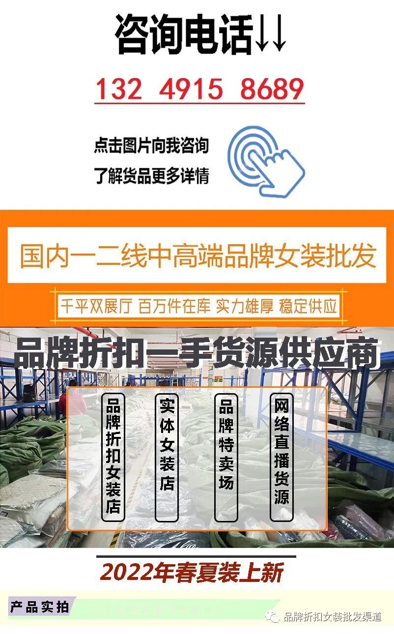 供应抖音&快手直播&实体店品牌批发走份一手货源联系方式: 古经理 132 4915 8689备注: 可一件代发合作模式:走份批发 打包拿货 低价走量 深度挑款折扣公司:广州伊芙圣罗莱国际服饰有限公货源网司